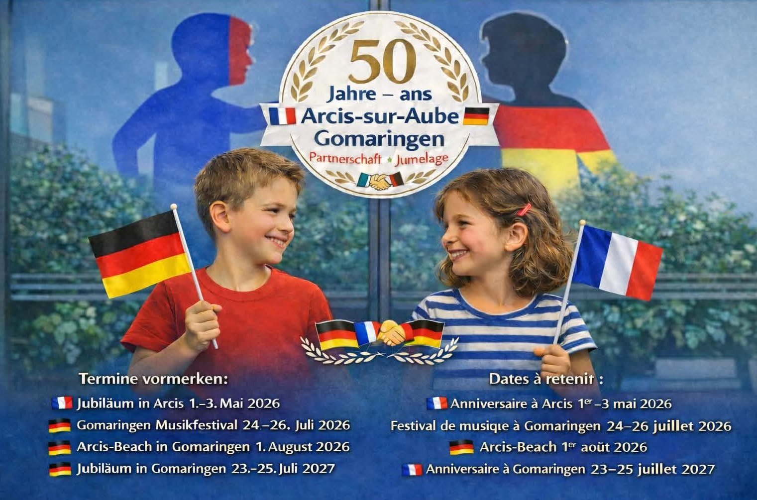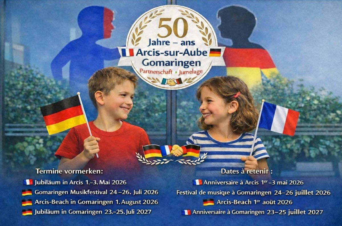 2026 und 2027 stehen die Jubiläumsfeiern zum 50-jährigen Bestand der Freundschaft - in Arcis und in Gomaringen - an.
